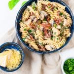 If you don't have rotini pasta on hand, use any bite sized pasta like penne or shells. Cavatappi or cellentani noodles or elbow macaroni noodles will also work well here.